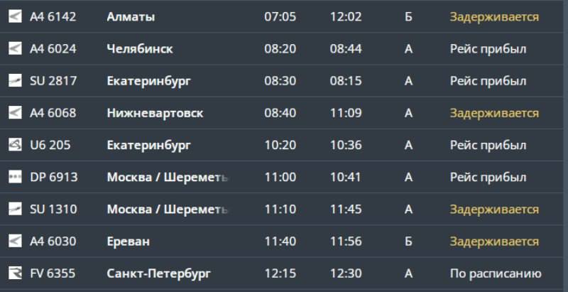 На Ставрополье задерживаются семь авиарейсов: в списке Москва, Алматы, Ереван и не только