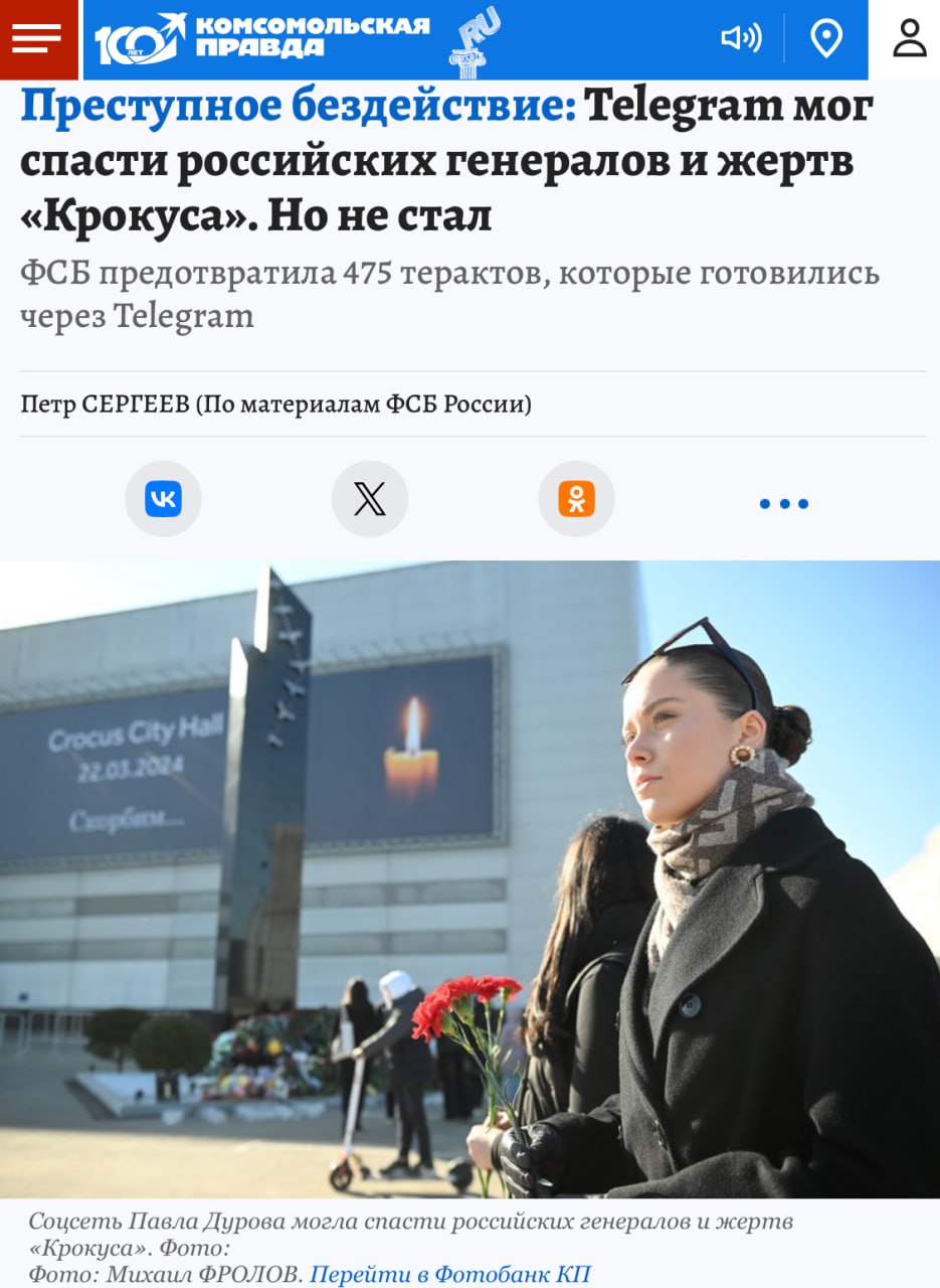 Против Павла Дурова в России завели уголовное дело о содействии терроризму. ФСБ заявляет, что Телеграм стал «главным инструментом спецслужб стран НАТО» и через него координируются диверсии и теракты — в том числе нападения на «Крокус» и школы.