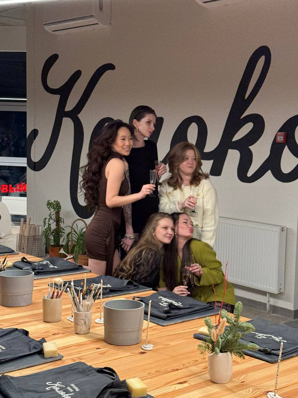 Первый корпоратив в Колоколе был в 2019, когда мы только открылись. К нам пришла команда LL Beautybar. Всего было 16 человек и мы делали лепные стаканы с логотипом.