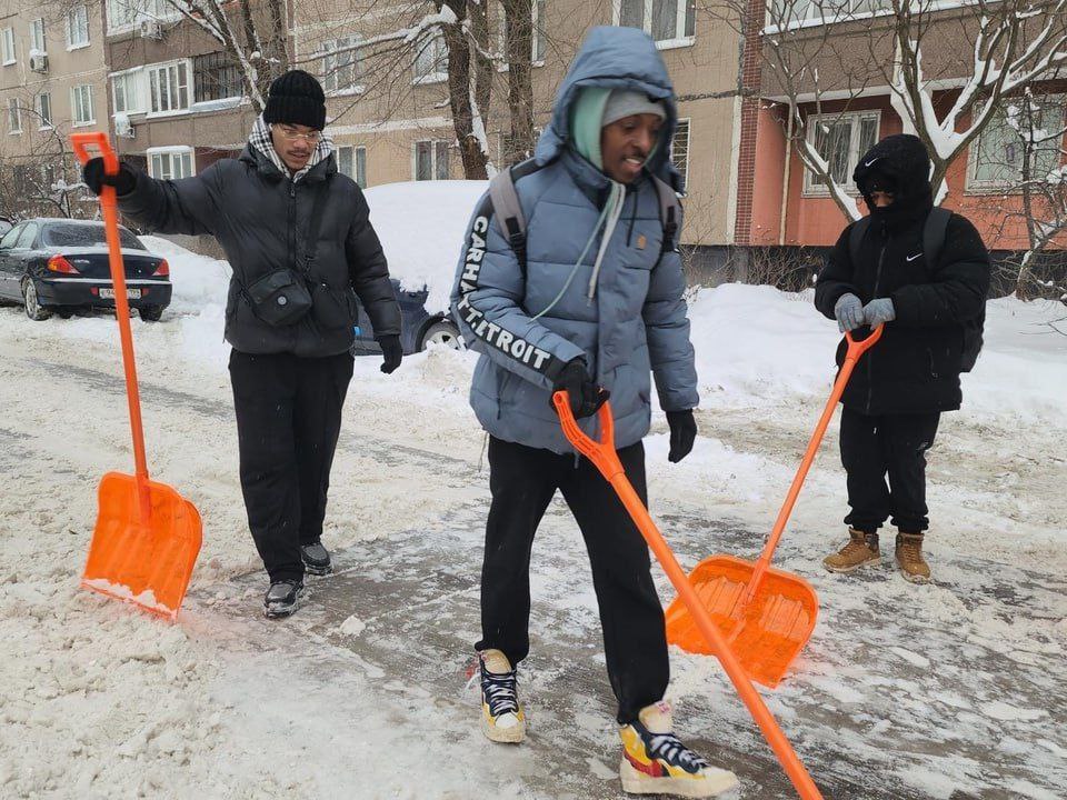 В ряде подмосковных дворов на уборку снега вышли кубинцы.