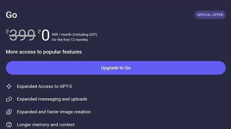 Увидел в сети простую схему, позволяющую даром получить год подписки на ChatGPT Go