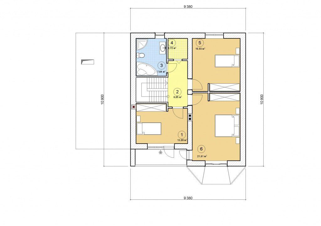 Другий поверх: три спальні, санвузол, гардероб.