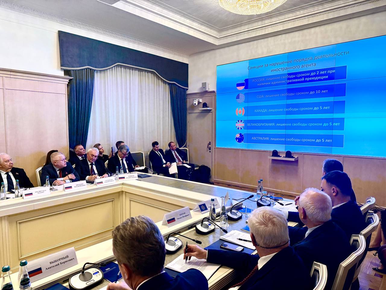 Рассказал коллегам о последних изменениях в законодательстве в сфере защиты суверенитета. А кроме того, представил коллективный «портрет» иностранного агента - то есть тех людей, которые стали ключевым инструментом по ведению антироссийской деятельности в руках наших противников.