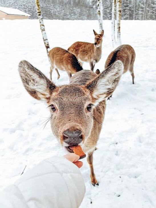 Зимняя сказка ждёт вас в арт-усадьбе «Веретьево». Днём приятно будет прогуляться по заснеженным тропинкам и заглянуть в местный зоопарк, чтобы увидеть маралов, оленей, ланей, норок, соболей и других зверушек. Заночевать можно в необычном доме-сфере, уютном домике с панорамным видом, в лесной избушке с жаркой русской печью или в просторном двухэтажном зеркальном доме. Адрес: деревня Веретьево, Талдом. 👀 Здесь вам не Москва