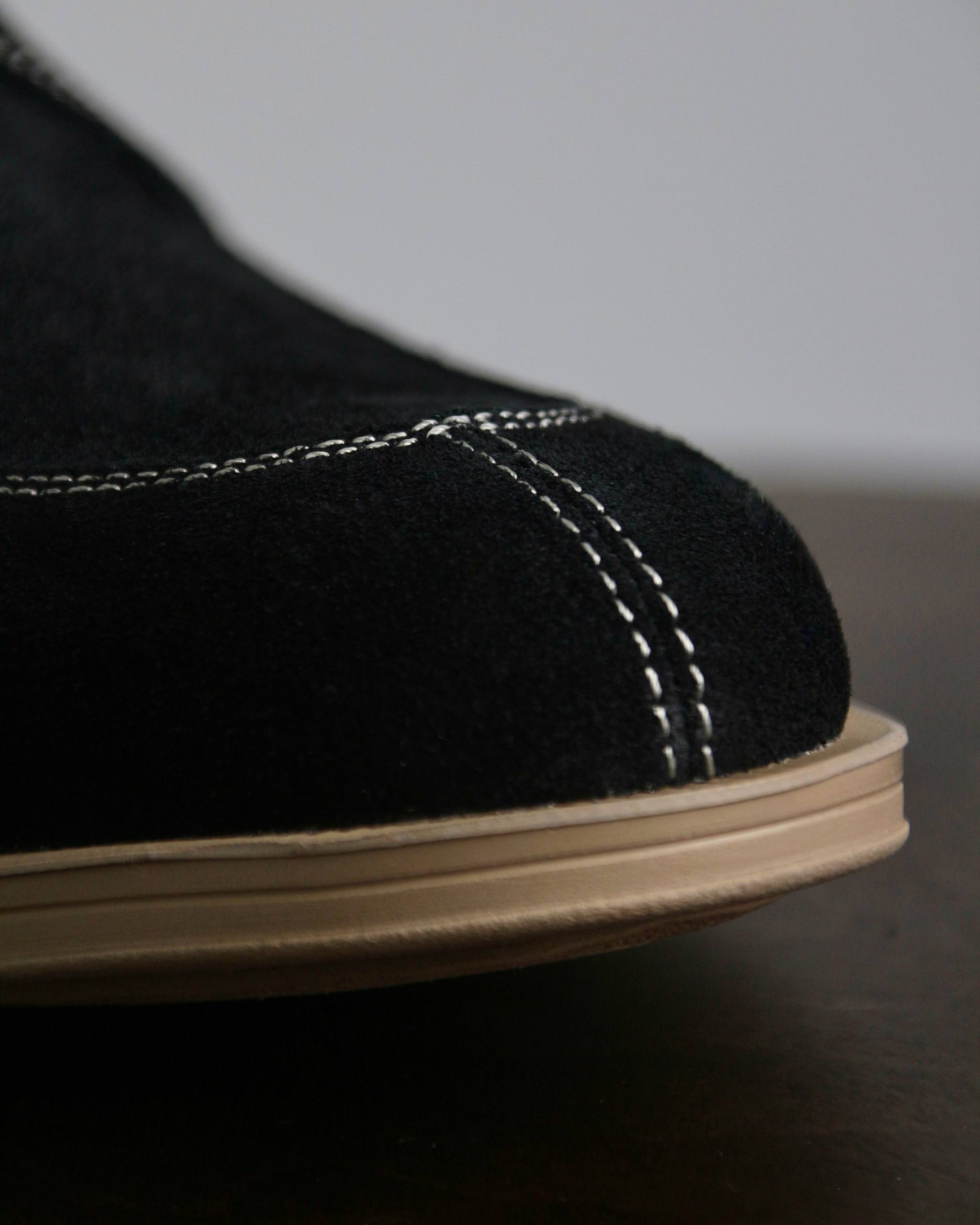 • Необработанные края на берцах и союзке добавляют фактуры и дерзости в строгий силуэт. Деталь позволяет сочетать пару, как с брюками, так и с более расслабленным низом.