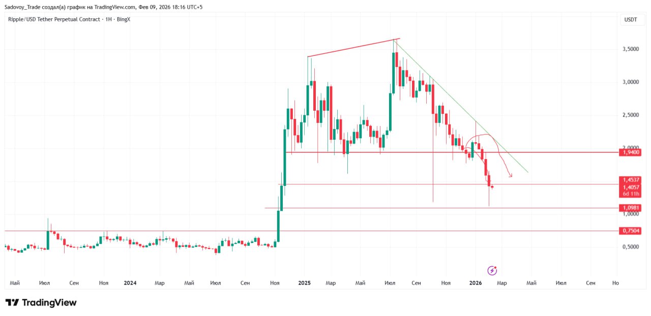 В прошлом обзоре мы писали, что январская свеча закрылась без фитиля, что вызывало опасения продолжения снижения без нормальных отскоков. Долго ждать не пришлось — цена упала примерно на 23% без существенной коррекции и упёрлась в крупную зону проторговки, где в 2024 году биткоин находился в боковике около 9 месяцев.