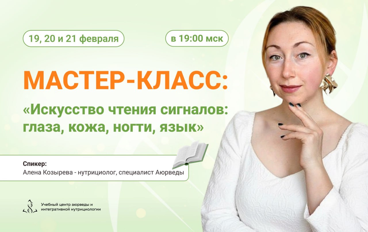 🎙 Мастер-класс «Искусство чтения сигналов: кожа, глаза, ногти, язык» с экспертом-нутрициологом Алёной Козыревой.