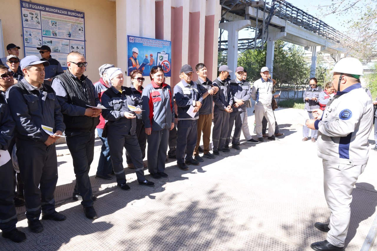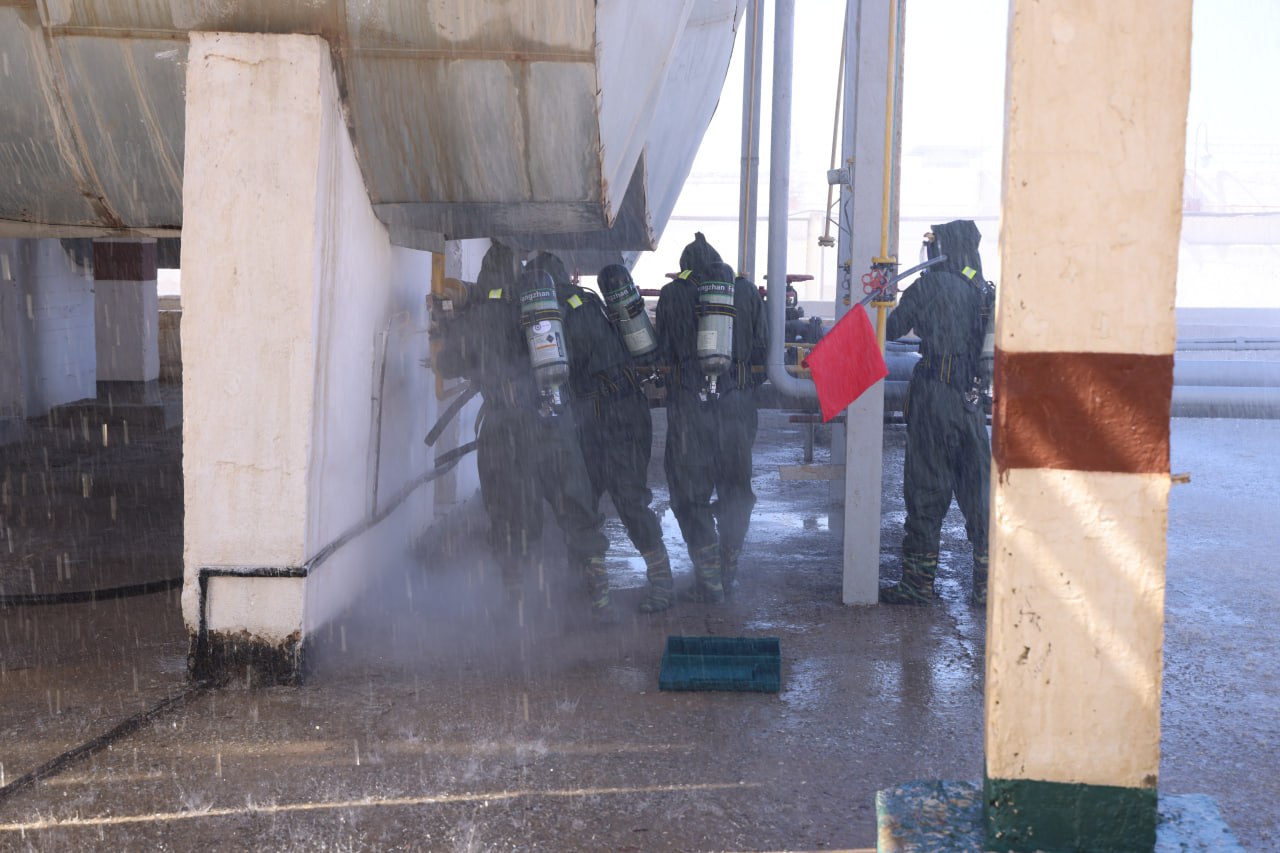 🚒“Favqulodda vaziyatlardan muhofaza qilish va fuqaro muhofazasi oyligi”ning rejasiga asosan korxonada Fuqaro mahofazasi tuzilmalari bilan “Kuchli ta’sir etuvchi zaxarli moddalarning atrof muhitga tarqalishi bilan bog‘liq favqulodda vaziyatlardagi harakatlari” mavzusida ko‘rgazmali amaliy maxsus-taktik o‘quv mashg‘ulotini o‘tkazildi.