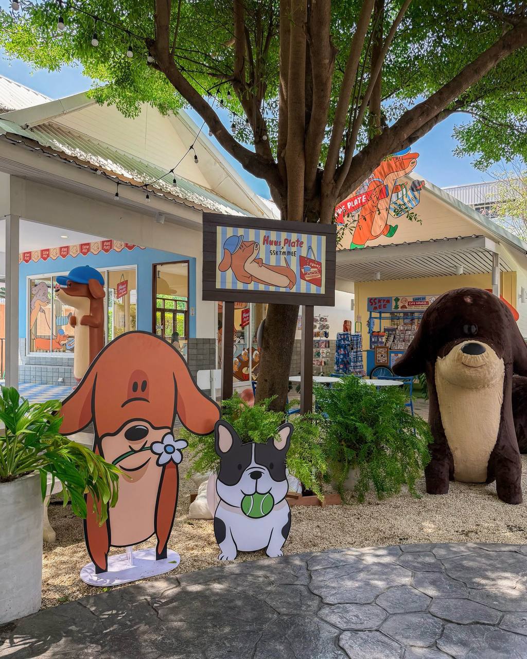 Максимально собачий поп-ап открыл тайский бренд ssktmmee. Здесь все про хвостиков, о них и для них. Например, блюда подаются на тарелках в форме собачек, напитки подаются в тематических стаканах, на каждом шагу есть 2D и 3D-фигурки пёселей.