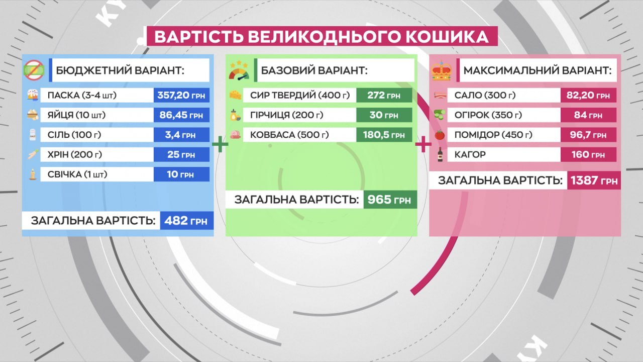 Найекономніший варіант, що включає паску, десяток крашанок, сіль, хрін і свічку, обійдеться в 482 грн.