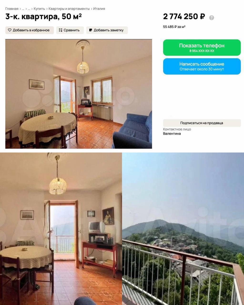 На сайтах объявлений найден вариант, от которого хочется плакать. Трехкомнатную квартиру в солнечной Италии площадью 50 квадратов выставили на продажу всего за 2 774 250 рублей.
