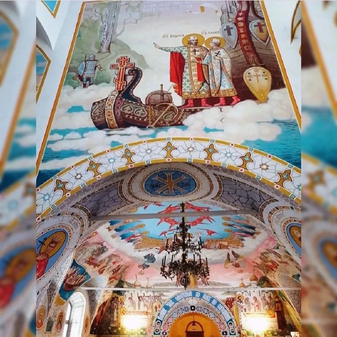На стенах церкви рассказывается в картинках полная история-легенда о князьях Борисе и Глебе.