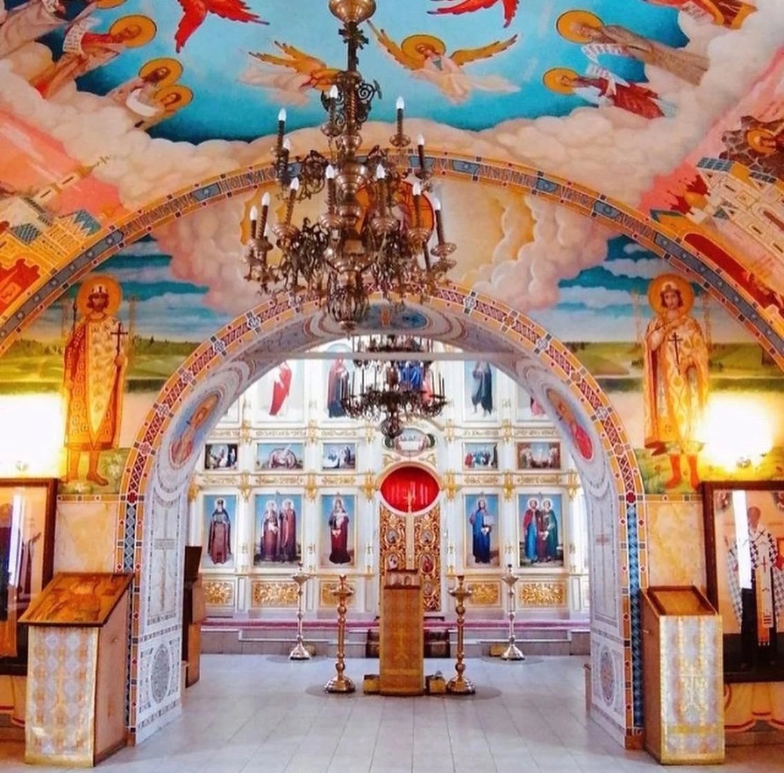 С улицы церковь выглядит строгой. Обходишь вокруг и чувствуешь, что стены видели многое. А вот внутри все совсем по-другому: стены расписаны яркими цветными сюжетами.