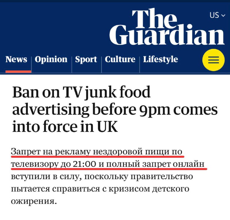 На телевидении нельзя рекламировать продукты с высоким содержанием соли, сахара и жира до 21:00.
