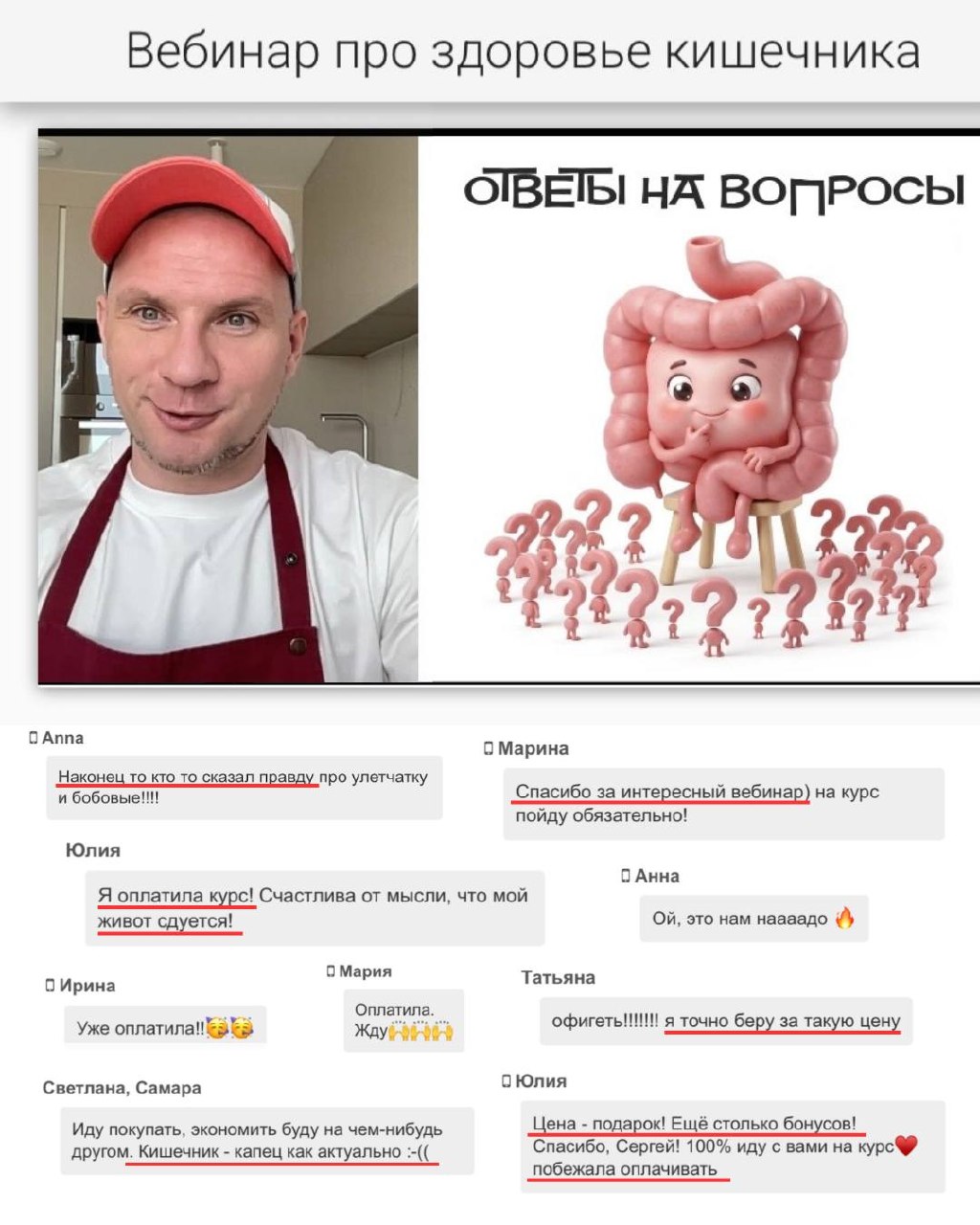 Завтра на открытом вебинаре вы сможете забронировать место на новый курс «Здоровый кишечник» по значительно сниженной цене, прихватив кучу дополнительных рецептов и целых рационов в подарок.