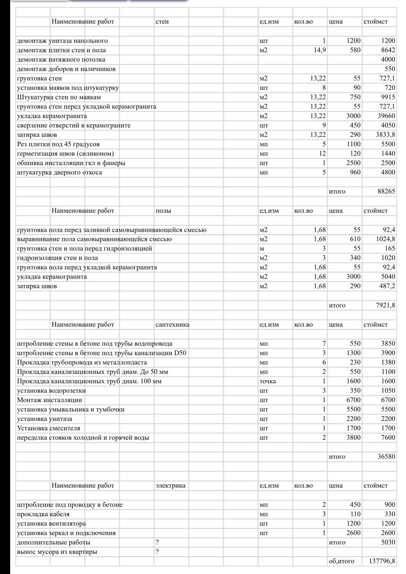 1.5 месяца ужаса , 330000 на материалы и работу на один туалет , а санузел не закончен и теперь надо все делать заново! Никто теперь не хочет это переделывать…