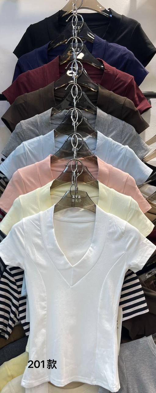 Базовая футболки с V-вырезом, актуальные с широким вырезом — must have сезона
