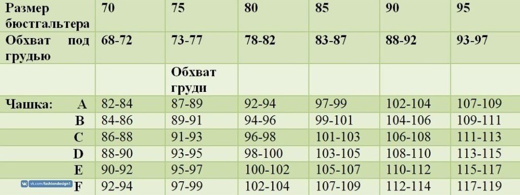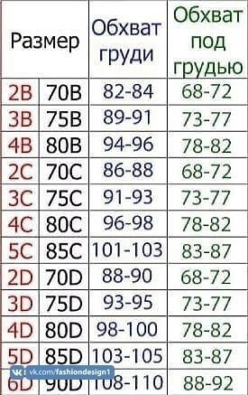 Буква латинского алфавита – кодовое название размера чашечки. Число впереди означает обхват под грудью, измеряемый в сантиметрах. Определить его просто: возьмите сантиметр и измерьте объем грудной клетки под грудью на выдохе. Следите, чтобы сантиметровая лента лежала ровно. То значение, которое вы получите, и будет первой частью вашего размера.