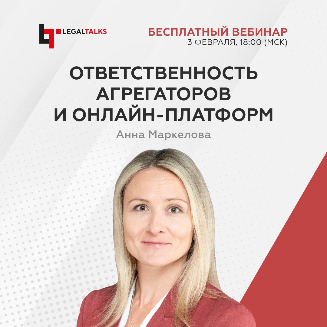 Сегодня в 18:00 в Legal Academy состоится бесплатный вебинар, на котором мы расскажем об ответственности агрегаторов и онлайн-платформ.