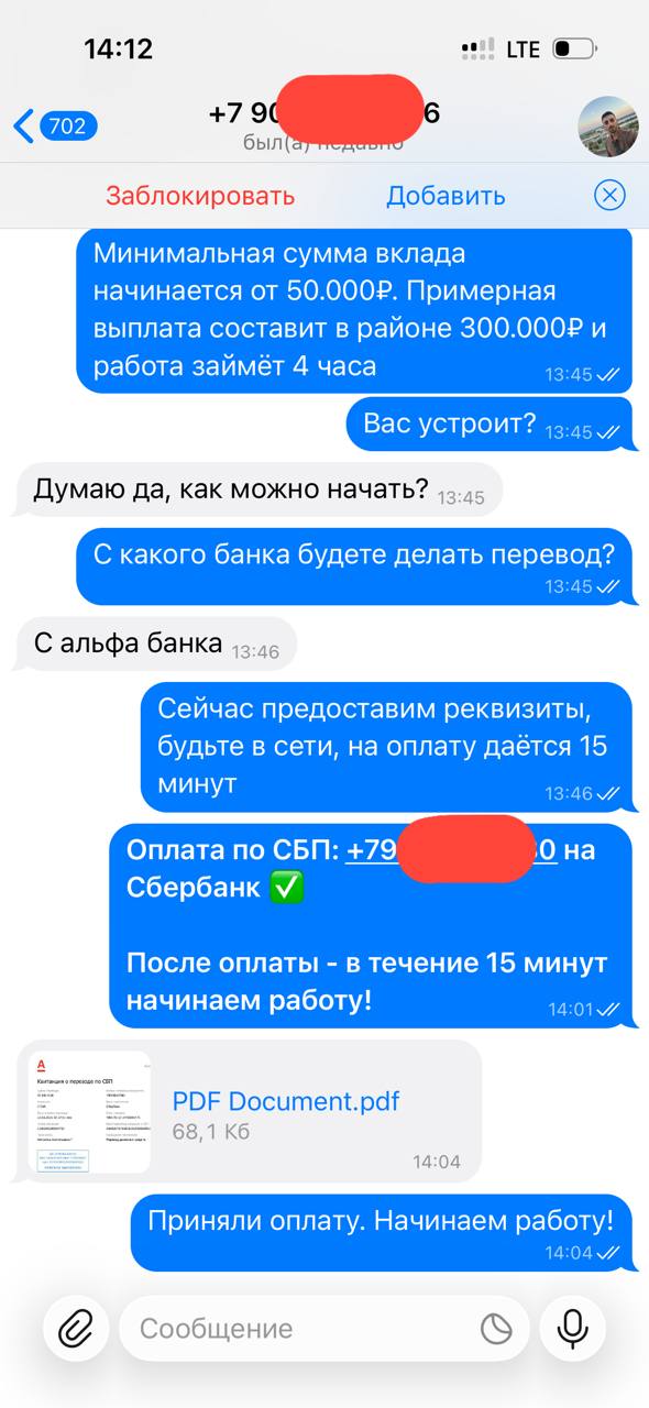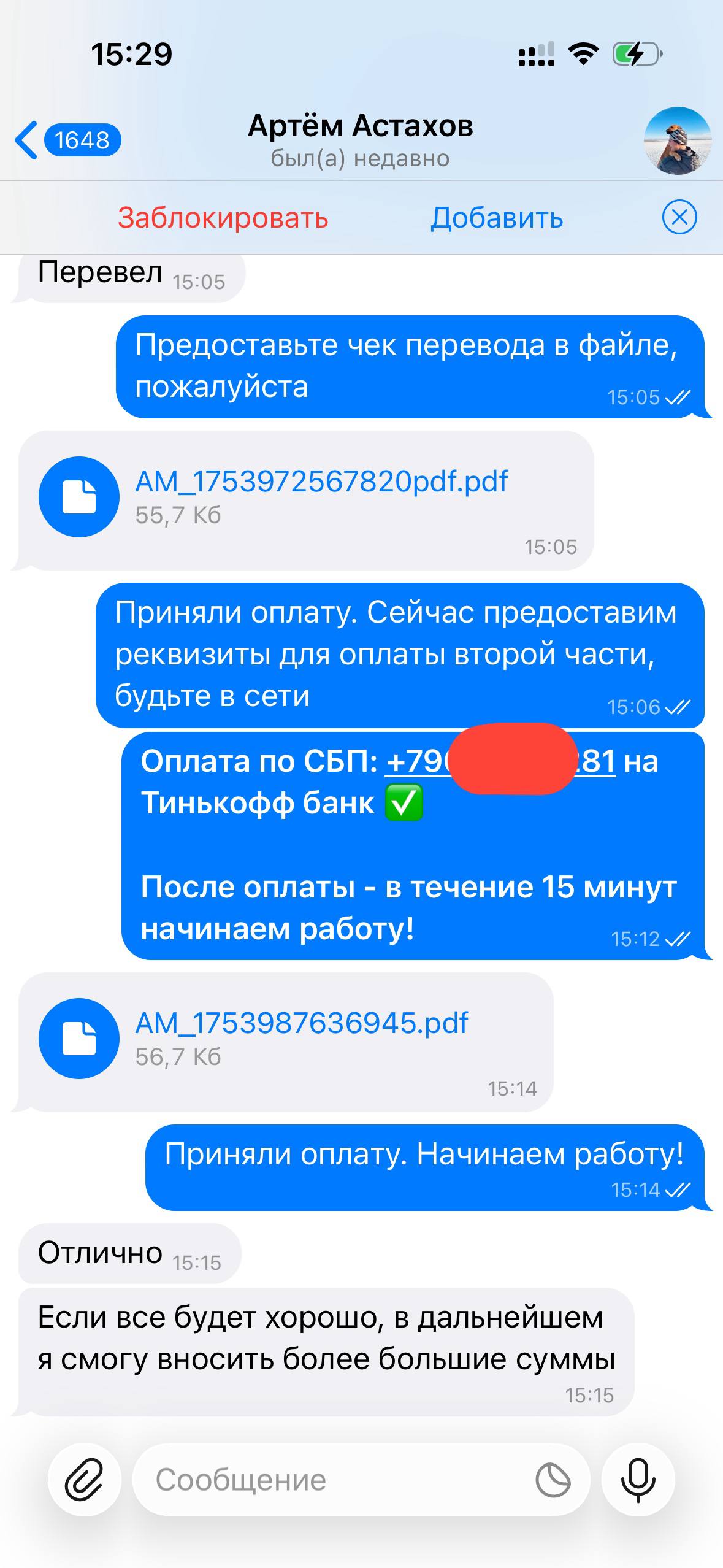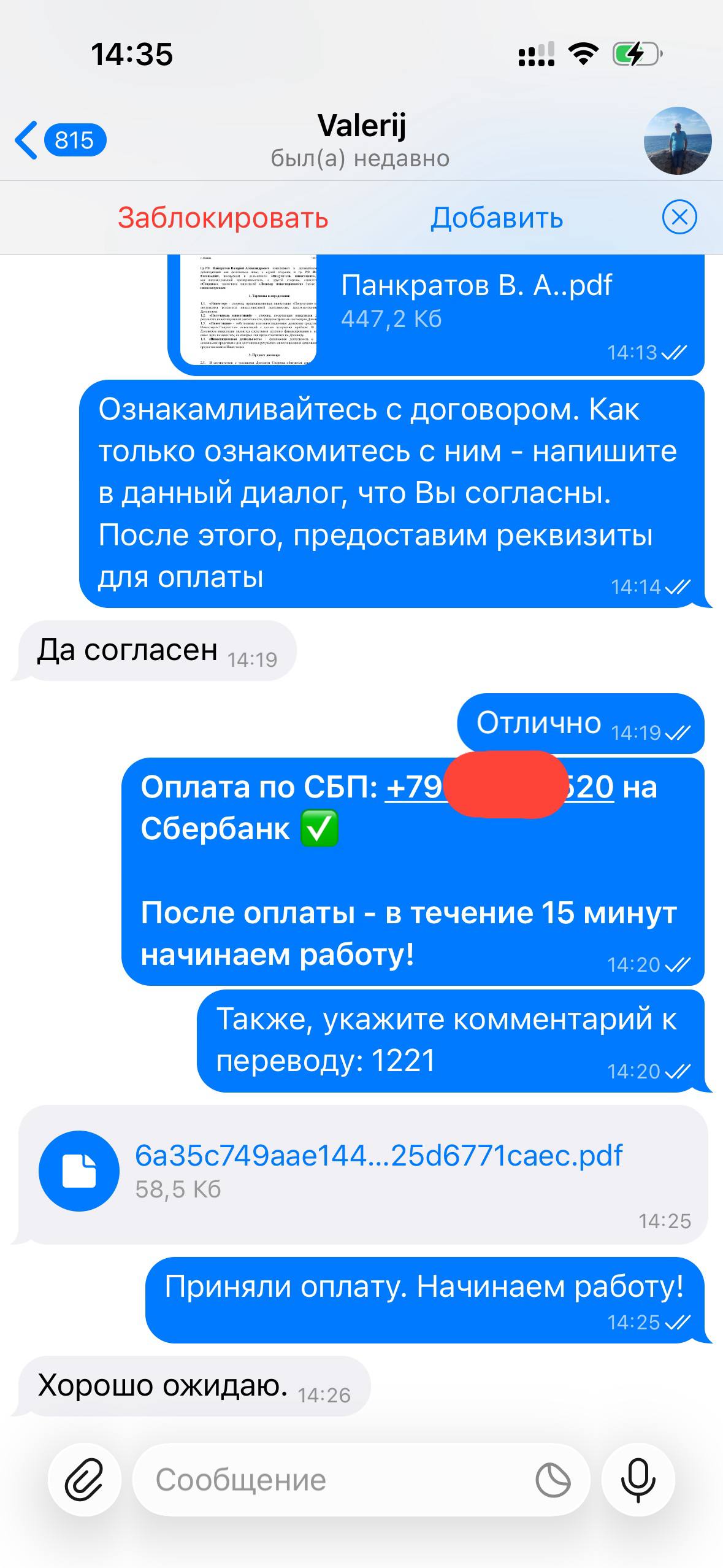 Я веду открытую работу, абсолютно не скрывая свою личность и могу созвониться с любым желающим по телефону, чтобы обсудить все условия.