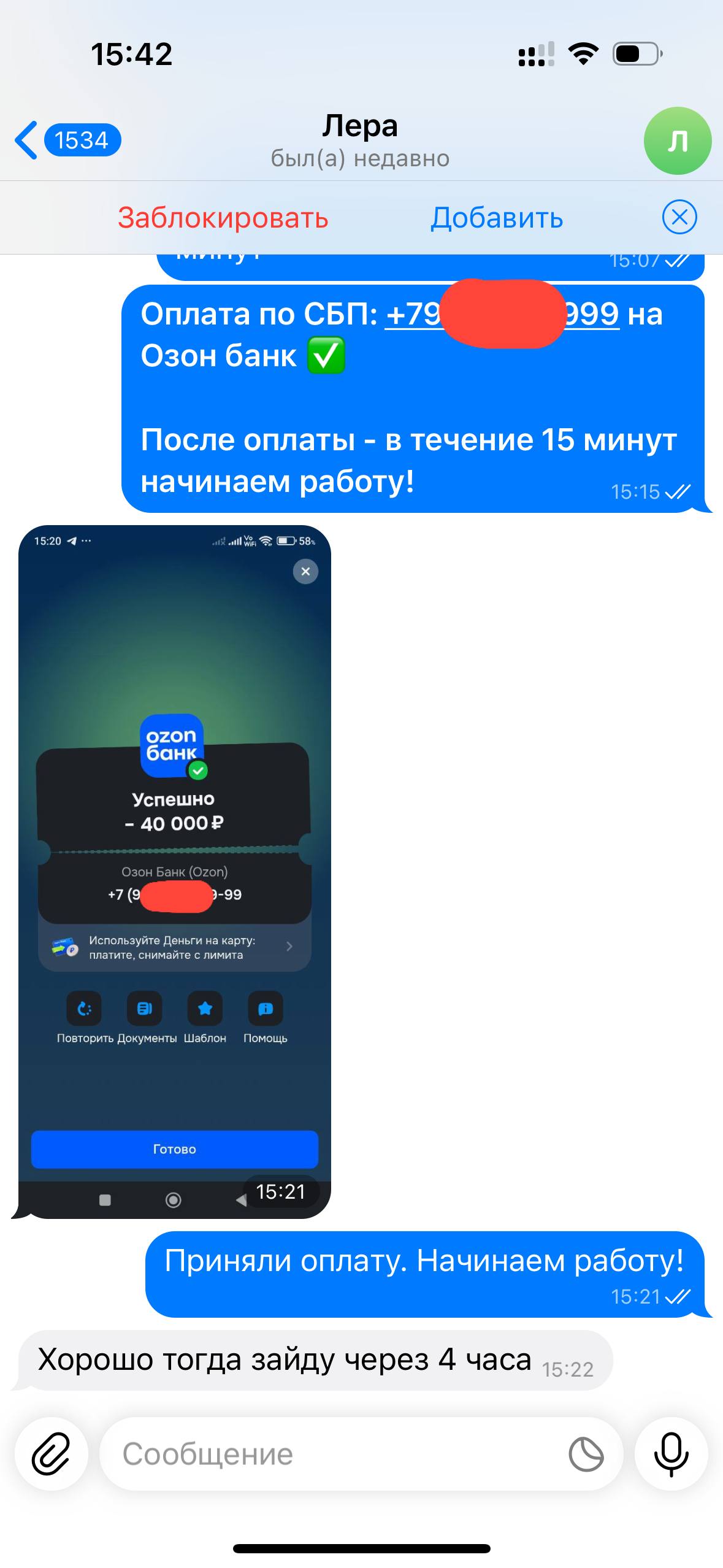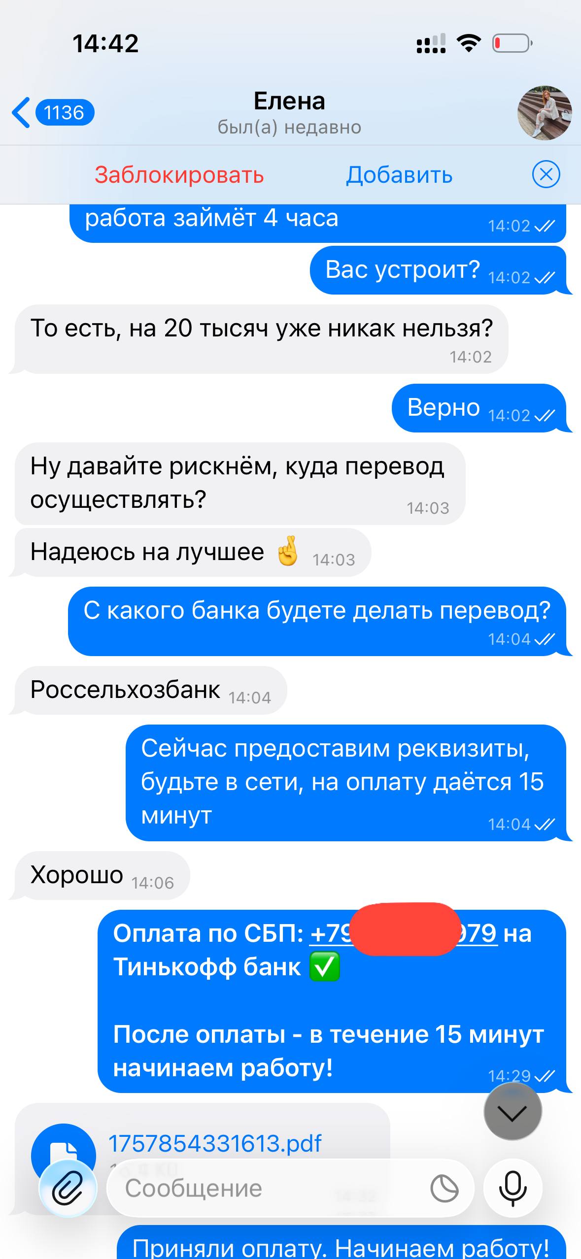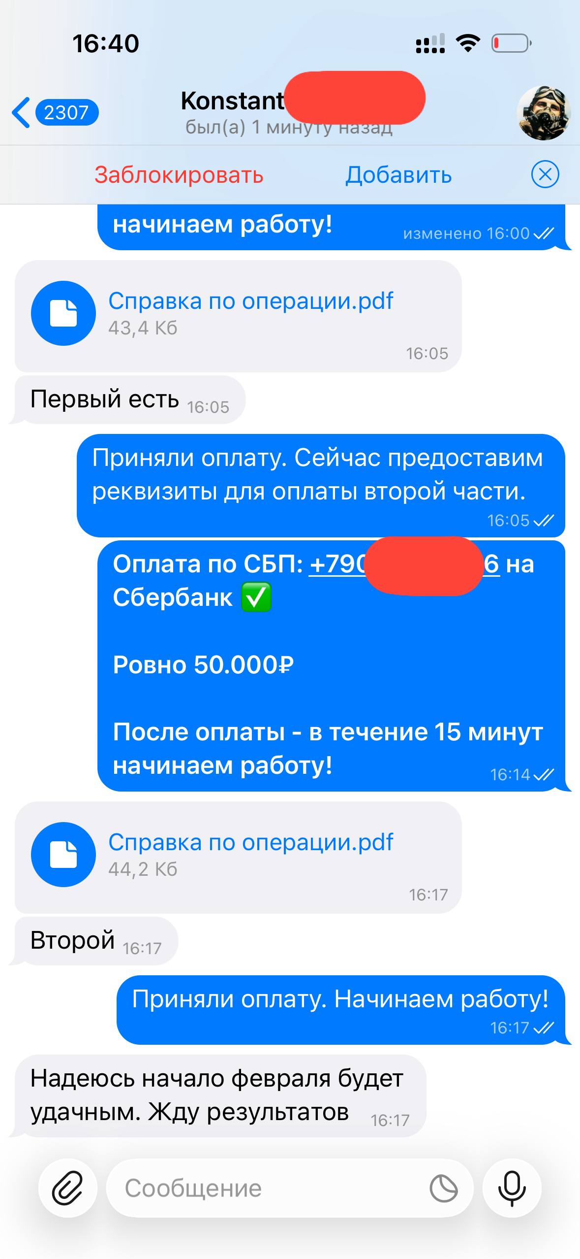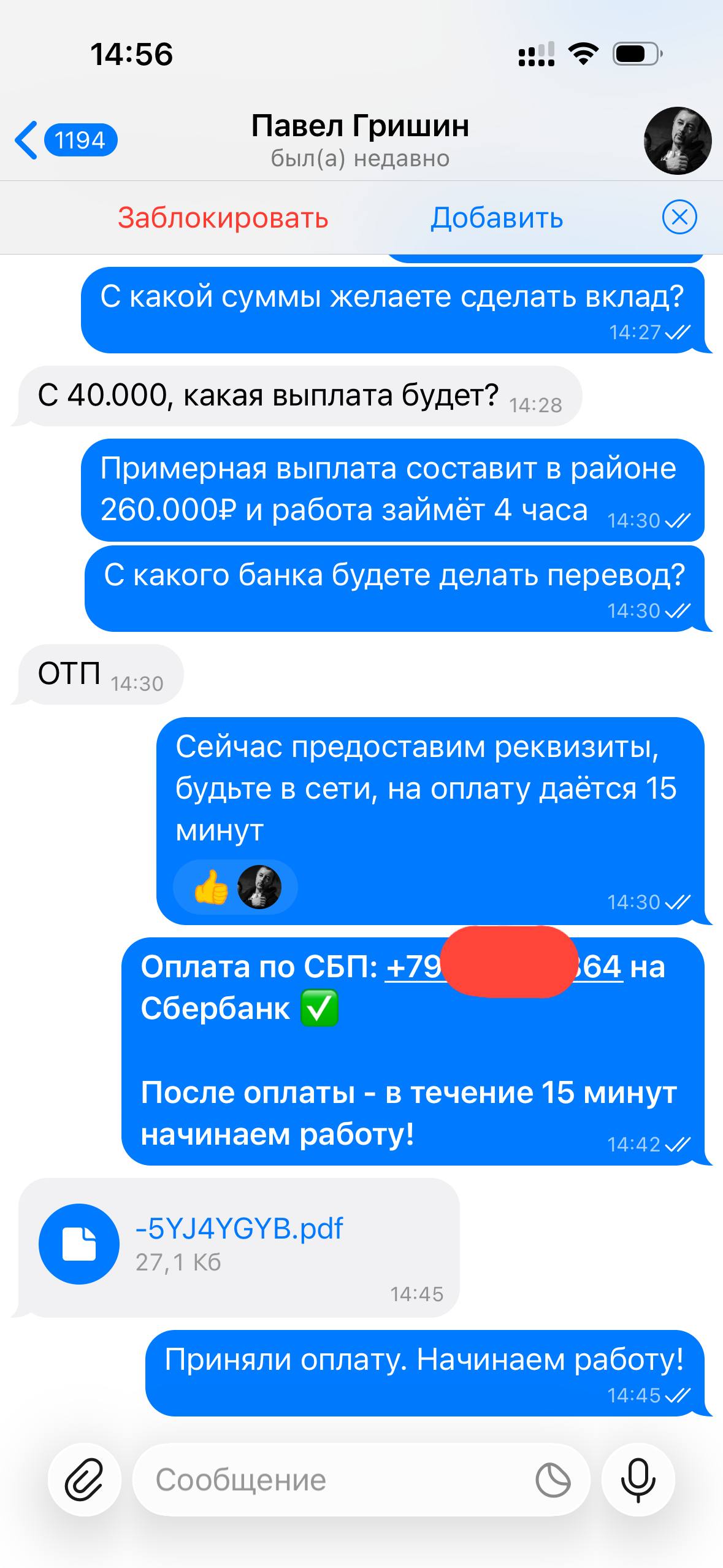 Я веду открытую работу, абсолютно не скрывая свою личность и могу созвониться с любым желающим по телефону, чтобы обсудить все условия.