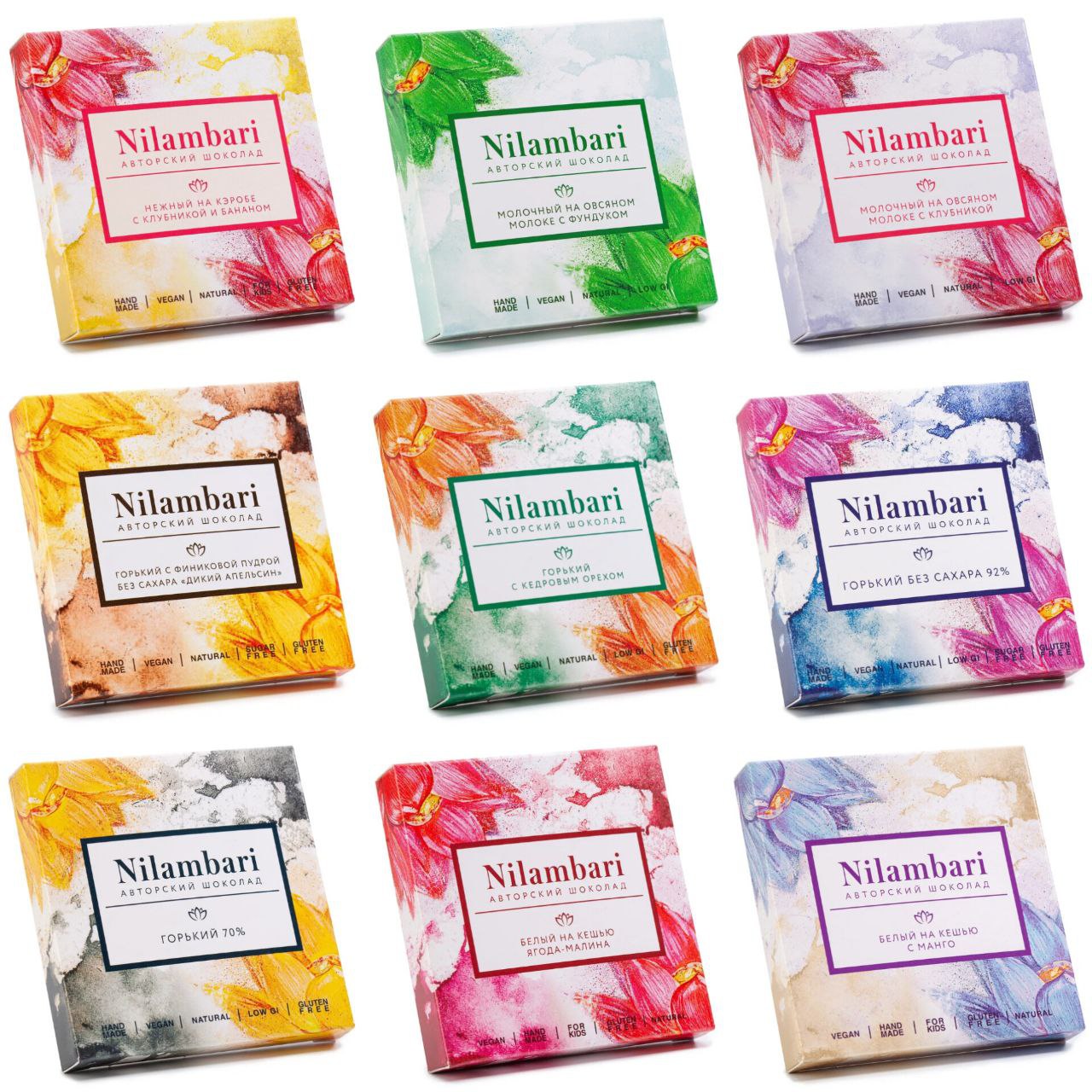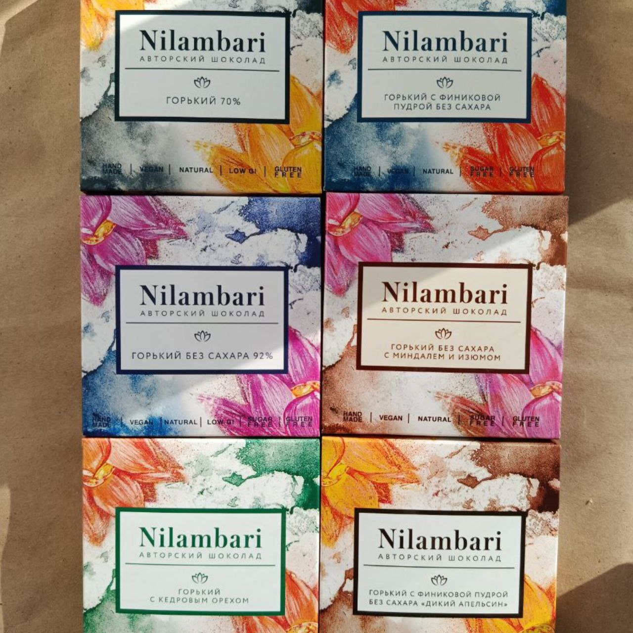 Ниламбари это шоколад из какао тёртого и какао масла (иногда только из какао масла). Таких переливов вкуса вы ещё не пробовали. Без белого сахара (есть совсем без сахара), лактозы, и вообще без всего ненужного.