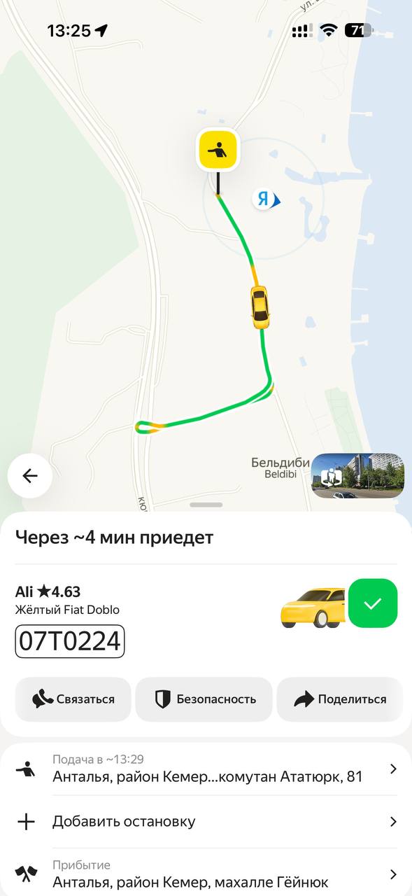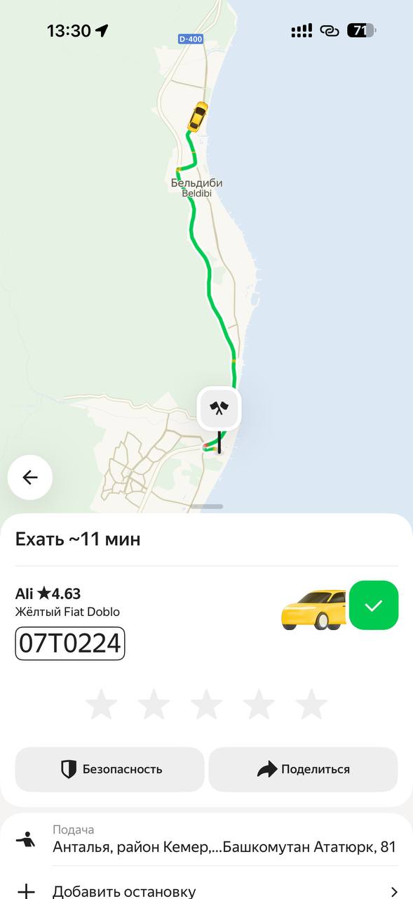 Примечательно, что в Кемере заработал сервис Яндекс-такси. Цена почти одинаковая, если вызывать через ресепшен или договариваться на улице. Главное удобство — деньги списываются с карты которой пользуешься дома. Без всякой налички.