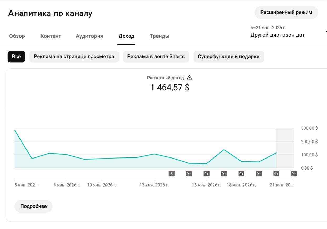📊 1.464$ за 14 дней — результат проекта YouTube под ключ.