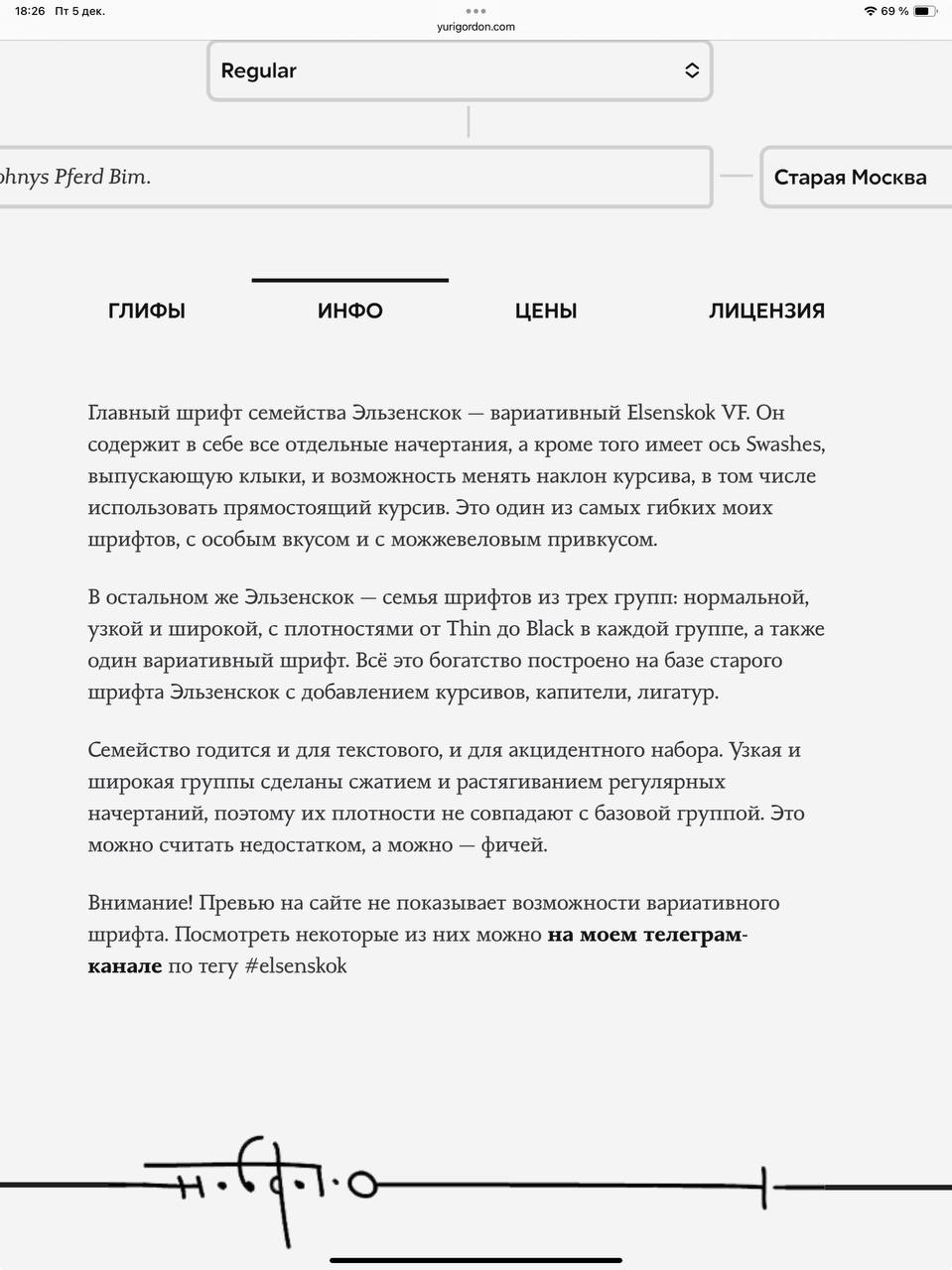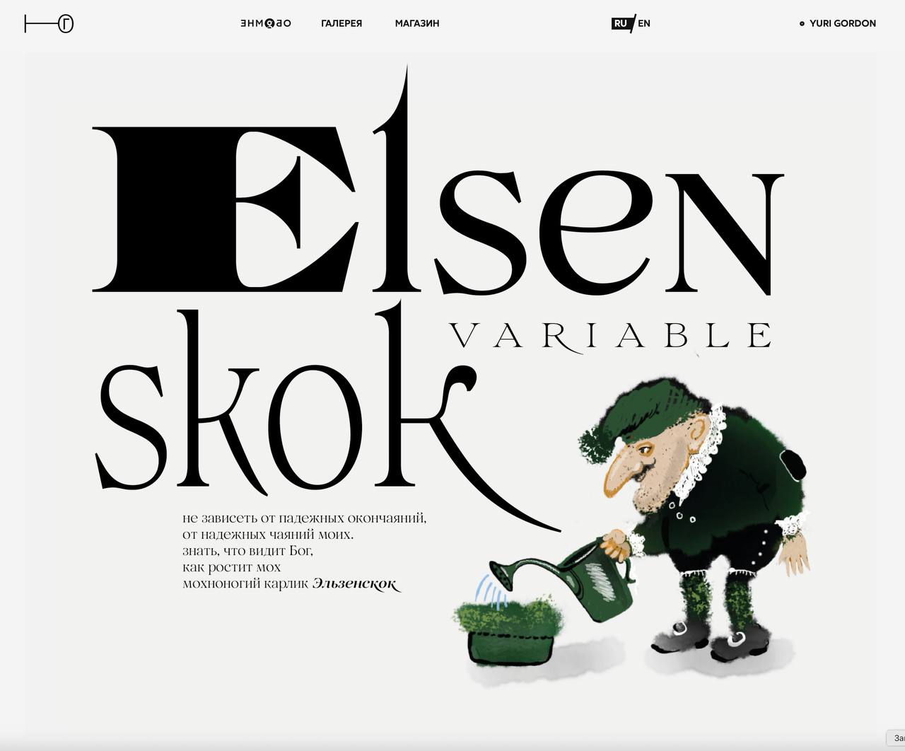 Работа закончена. Шрифт из тридцати статических и одного вариативного начертания выложен на сайт. Даже мохноногий карлик нарисован.