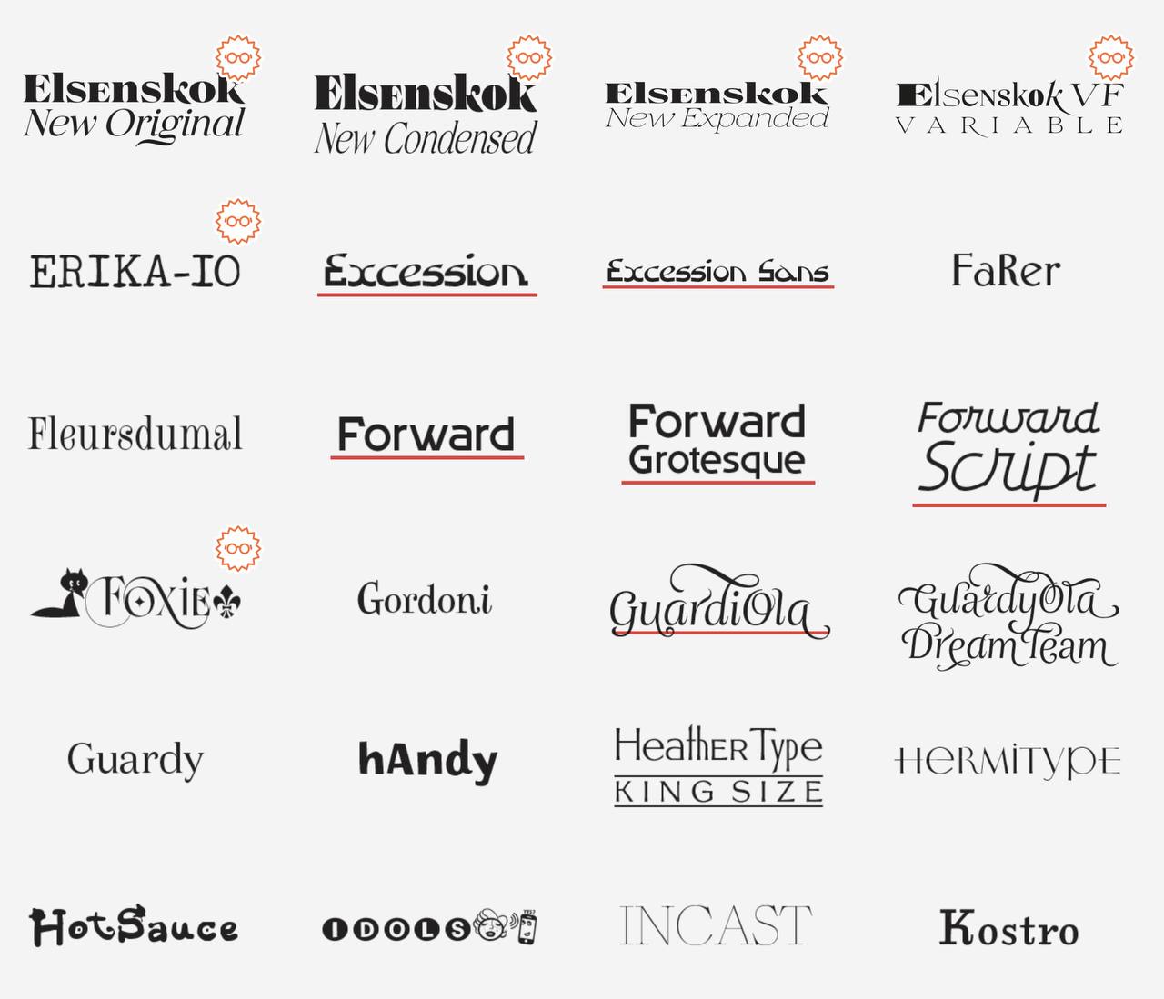 Так получилось потому, что я просто сжал и растянул обычные начертания. Возможно, это лень. Но скорее — другое отношение к шрифту.