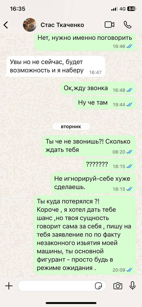 У меня лично были многочисленные случаи: от займов до вещей, включая машину, которую он брал на временное пользование. В прошлый раз вернул её с повреждениями, без проверки я потерял возможность зафиксировать ущерб. Сейчас ситуация повторилась: он забрал BMW E39 у своей сестры, а затем отдал машину за свои долги, не отвечая на звонки и сообщения.