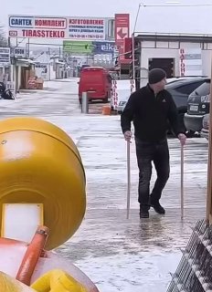 Был одет: чёрная куртка, синие джинсы. На голове чёрная шапка.