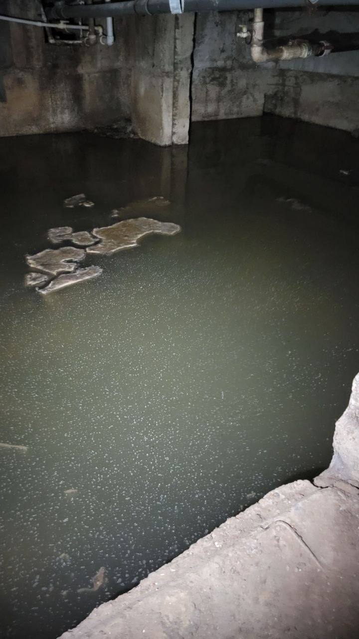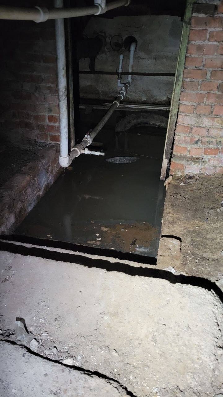 Жильцы дома по ул. Строителей, 52 (мкр. Кировский) бьют тревогу: уже третью неделю подряд подвал затапливает канализацией. Вода стоит постоянно — с резким запахом, мусором и отходами, уровень достигает 10–30 см.