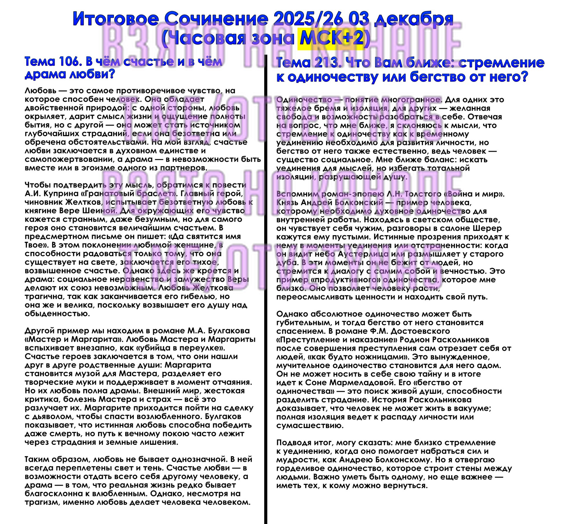 Официальные темы на Итоговое Сочинение - 11 класс (03.12.2025)