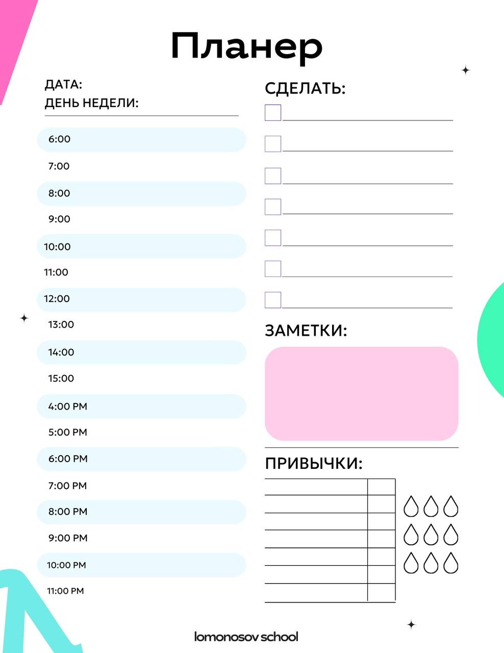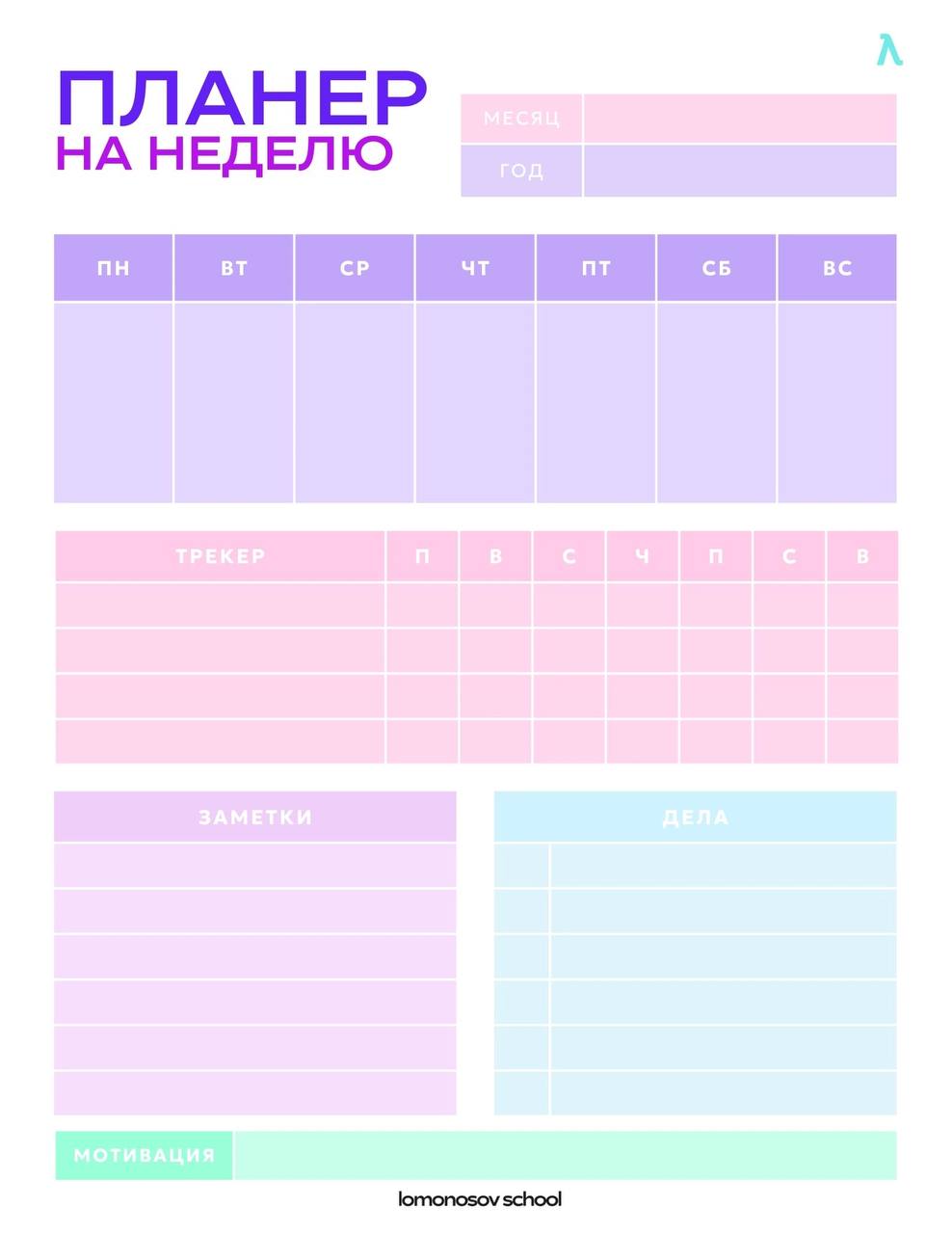 А ещё я подобрал для вас разные полезные планеры от Lomonosov School💜