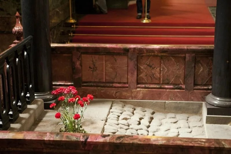 Что интересно: В храме сохранились свидетельства трагедии, на месте которой он построен: камни булыжной мостовой, на которые упал смертельно раненый император, плиты тротуара рядом и часть решётки Екатерининского канала (сейчас — Грибоедова)
