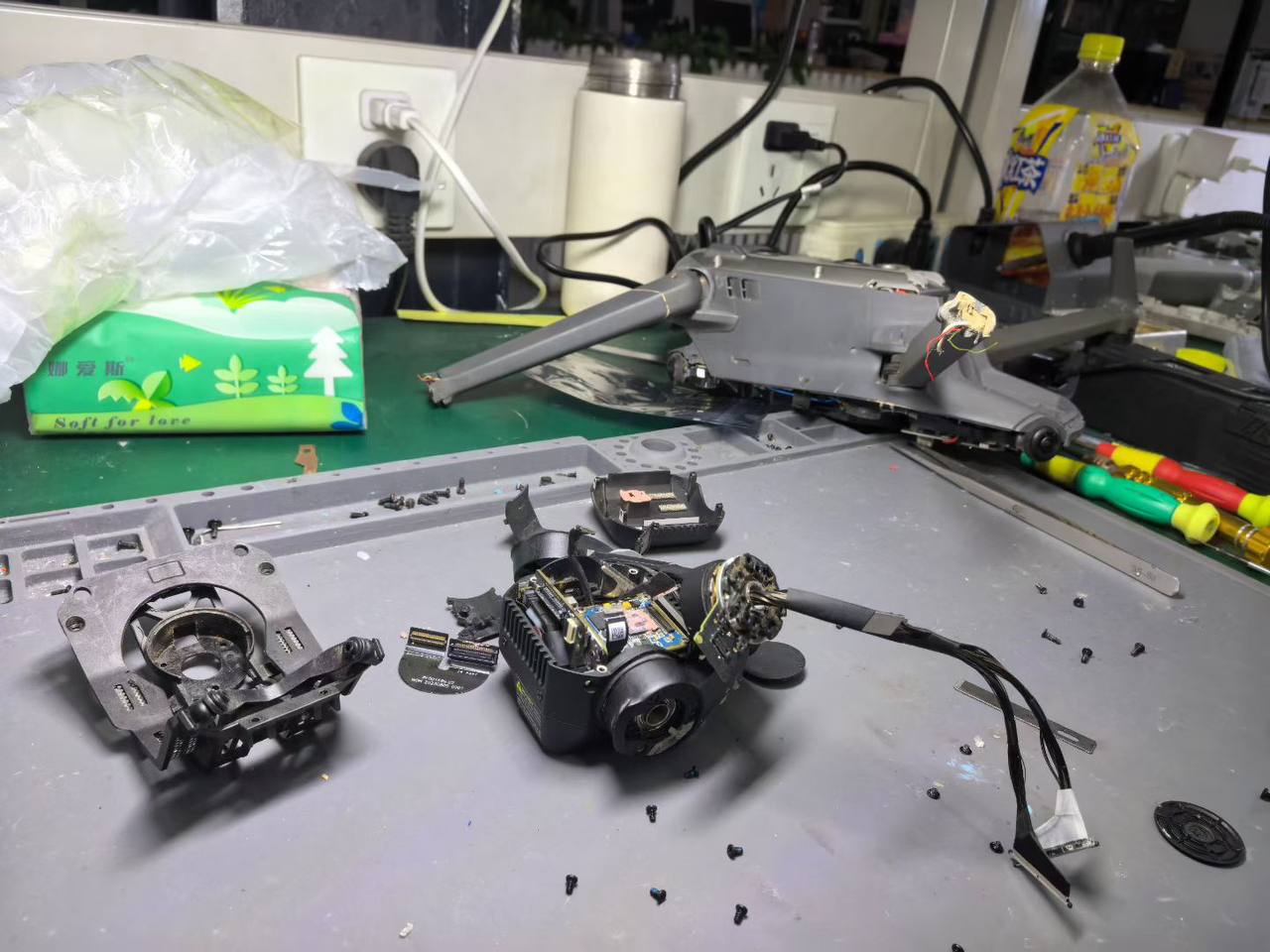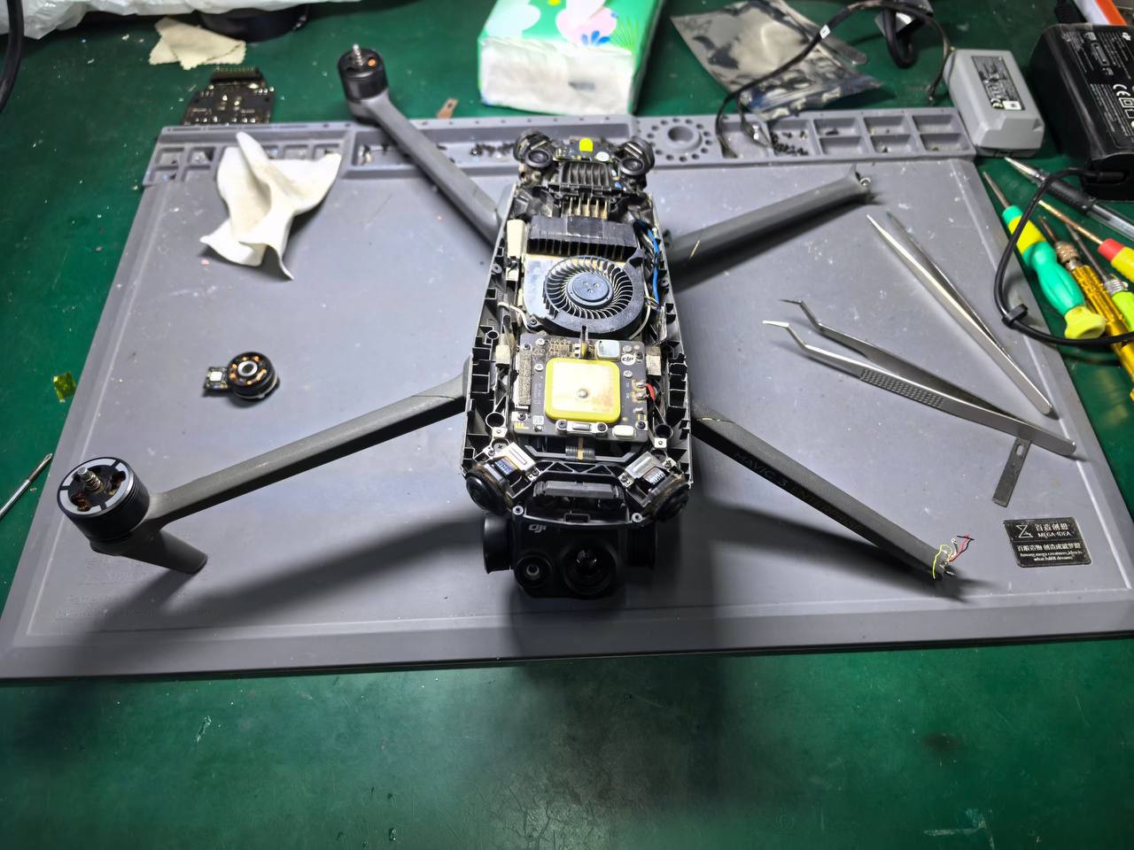• Силовая часть: Замена сломанных лучей и восстановление проводки к моторам. Когда луч висит на одних проводах — это ювелирная работа по перепайке.