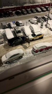Другой же сохатый подошел прямо к двери многоэтажки