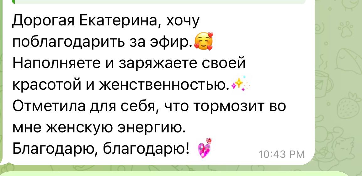 Дорогая Екатерина, хочу поблагодарить за эфир.🥰