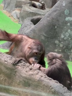 Сородичи-орангутаны обижали молодого Мотю, но чтобы он не чувствовал себя одиноким, ему нашли необычную соседку — пожилую самку гиббона Лизу. Утром после завтрака они с нетерпением ждут встречи, чтобы вместе провести день💙