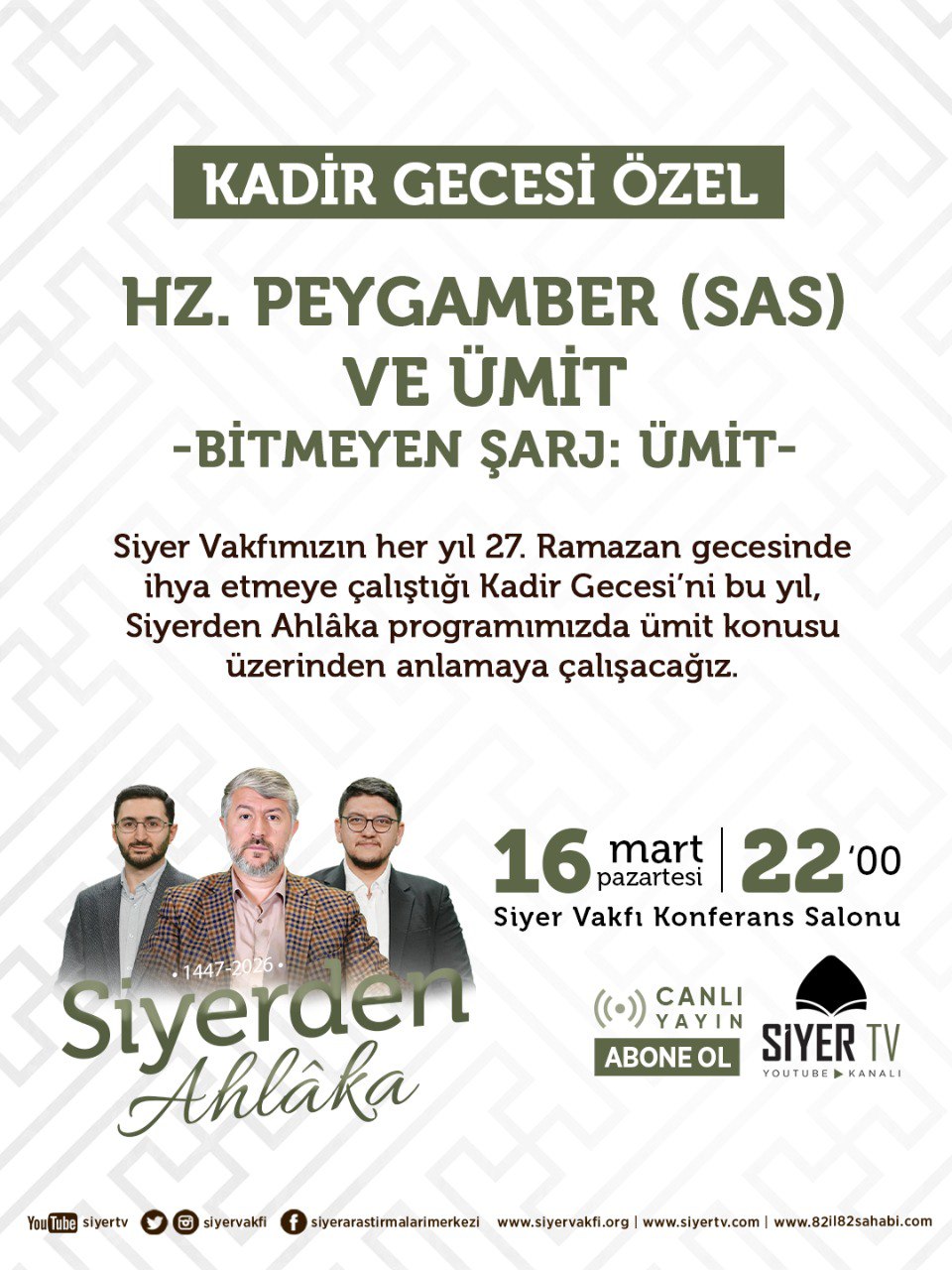 Kadir Gecesi’ne özel ümit konusunu konuşacağımız programımız bu akşam 22.00’de Siyer Tv Youtube Kanalımızda.