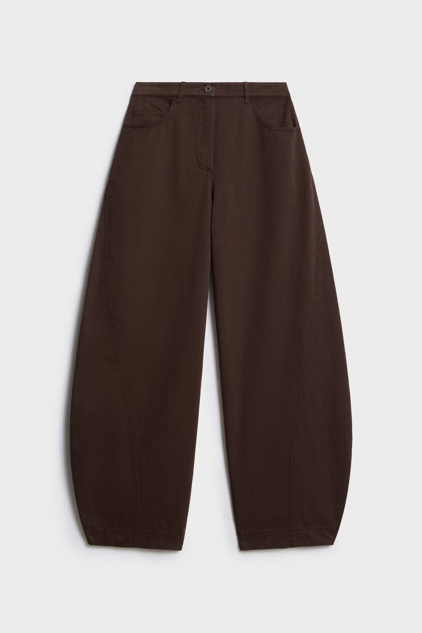 ▪️Брюки коричневые объемные от Lime. Давно я не трогала ткань с таким удовольствием. Хлопковый твил, посадка высокая, акцентные швы. Это те самые брюки, которые вы будете хватать с полки каждое утро.