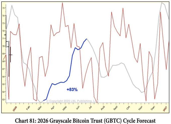 Прогноз Ларри Уильямса по циклу биткоина в оттенках серого указывает на бычий циклический восходящий тренд.