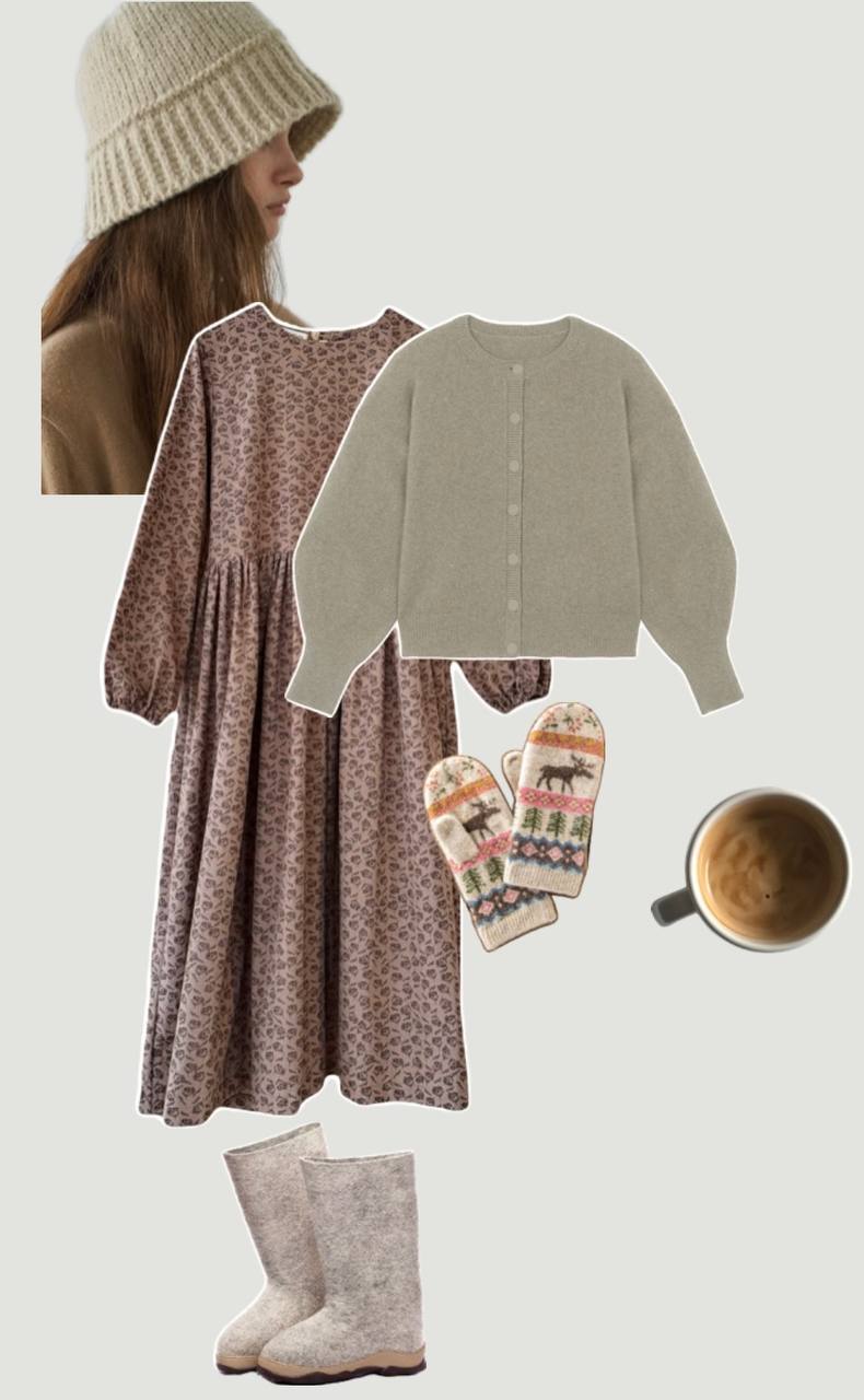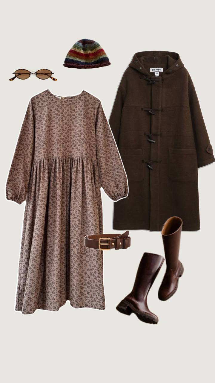 Собрали образы для платья «Имбирное печенье» — и с валенками, и с балетками, потому что платье актуально в любой сезон😍🥰🤎