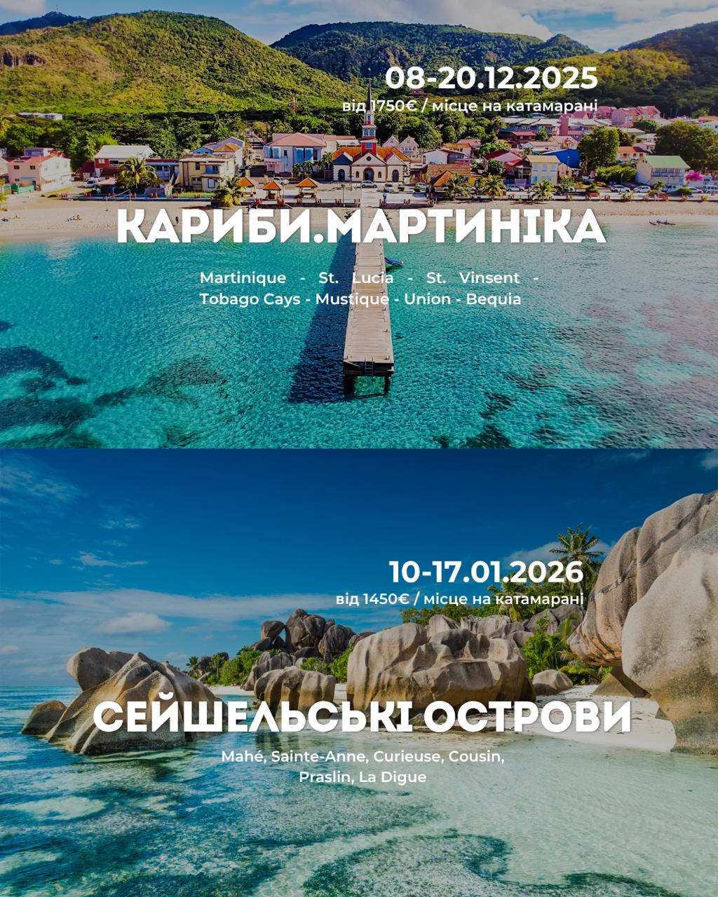 Обирати вам: Кариби це must visit для тих, хто хоче динаміки та різноманітних краєвидів щодня! А Сейшели – для тих, хто хоче усамітнитись з природою та побувати у справжньому райському куточку!