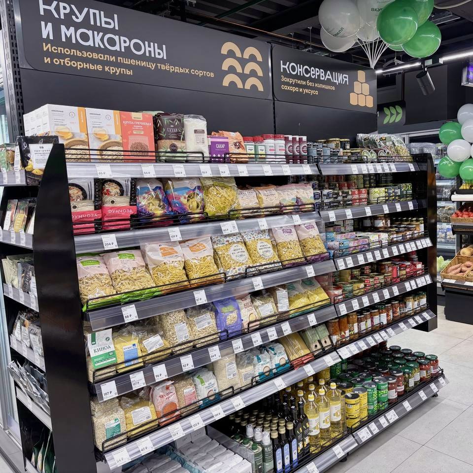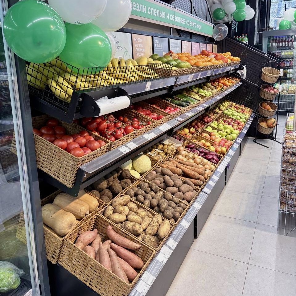 Здесь есть все, что нужно: свежие фрукты и овощи, молочка, мясо и рыба, веганские блюда, безлактозная продукция, готовая еда, бытовая химия и многое другое🥦