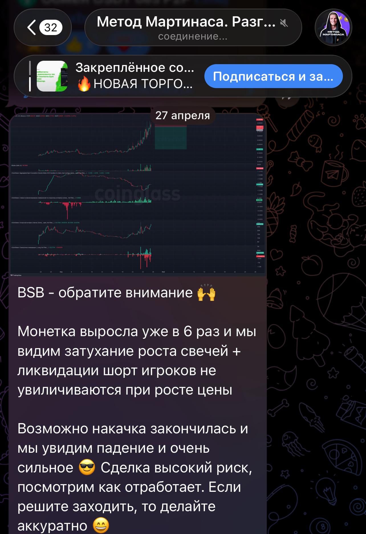 👉 27 апреля я дал сигнал по монете BSB с точкой входа и тейк профитом