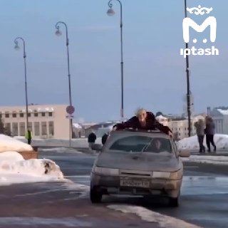 Наверху, кстати, хозяин авто. А за руль он посадил случайного прохожего, чтобы снять этот видос.