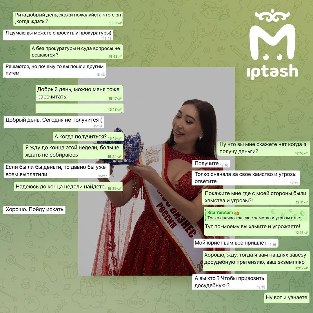 Группа Виктории потратила на это "развлечение" 320к. Наставница вызвала полицейских, и в их присутствии организатор Дарья Гапонцева написала расписки, что вернёт деньги. С ней мы тоже связались: женщина винит во всём спонсора, который не оплатил аренду. По словам Дарьи, "некая организация" специально сорвала показ. Обещает, что деньги за участие всем вернёт в течение двух недель, а другие расходы родителям возместит потом.