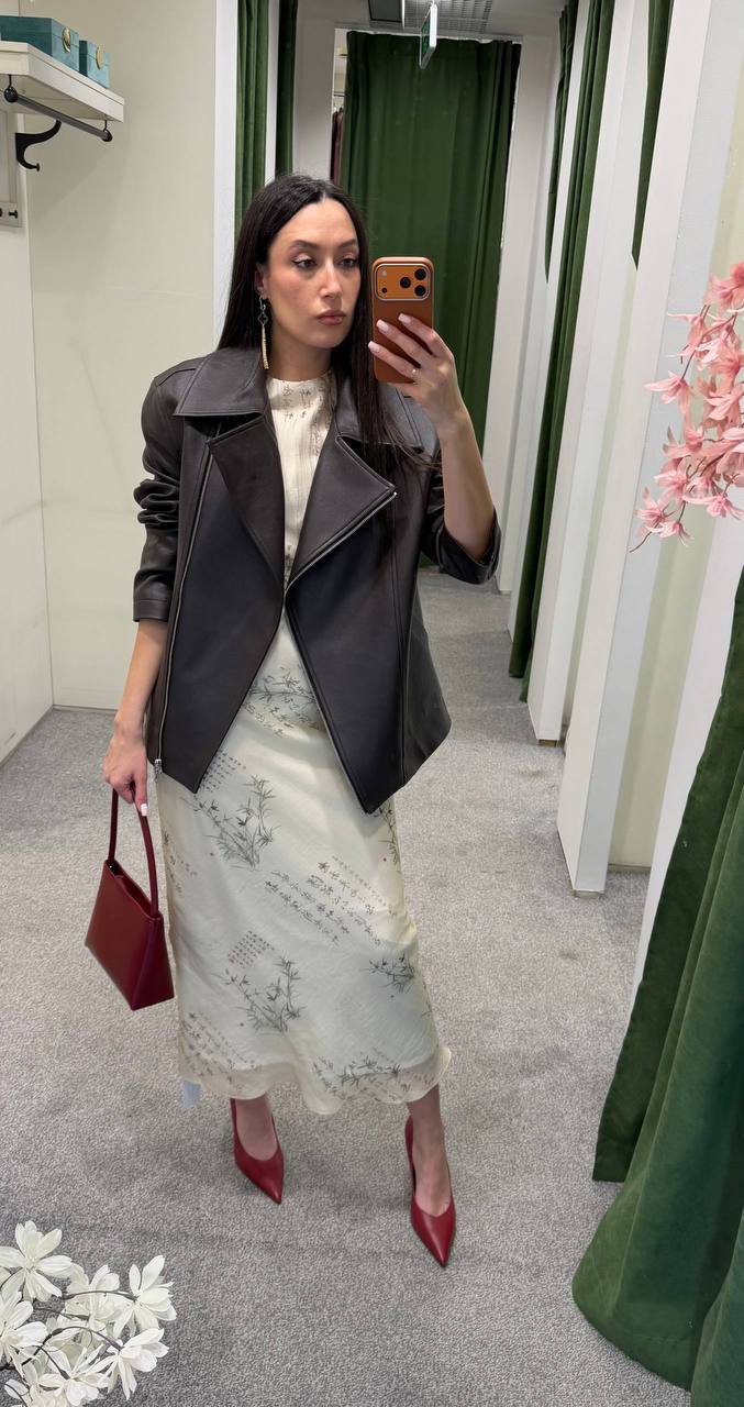 Еще один из вариантов образа для вечера пятницы - косуха из эко-кожи в оттенке шоколад и силуэтное миди